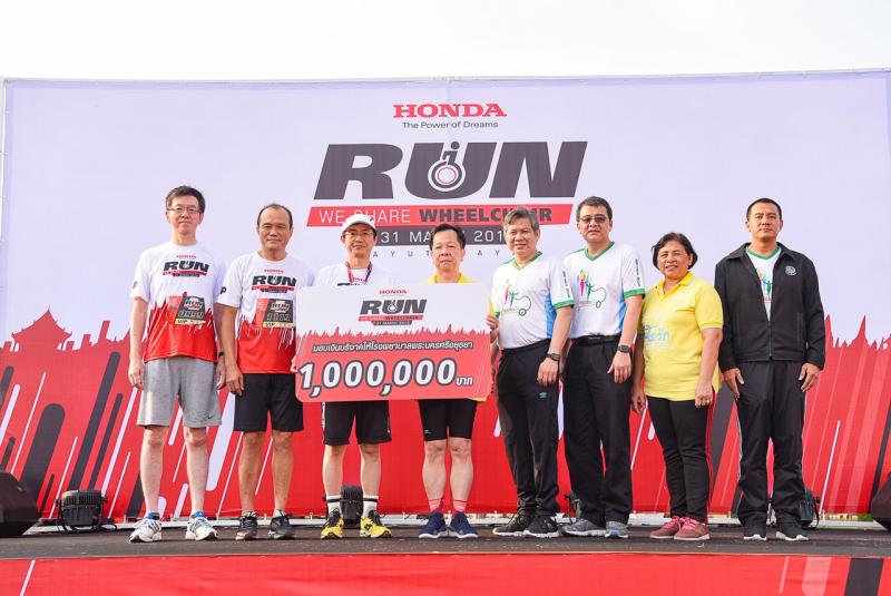 บริษัท ฮอนด้า ออโตโมบิล (ประเทศไทย) จำกัด สานต่อกิจกรรมเพื่อสังคม จัดวิ่งการกุศล “Honda RUN We Share Wheelchair” ณ บริเวณพระบรมราชานุสาวรีย์สมเด็จพระนเรศวรมหาราช จังหวัดพระนครศรีอยุธยา ซึ่งเป็นจังหวัดที่ตั้งโรงงานและฐานการผลิตแห่งแรกของฮอนด้า โดยเชิญชวนพนักงาน ผู้จำหน่าย สื่อมวลชน และบุคคลทั่วไป ร่วมวิ่งการกุศล เพื่อนำรายได้ทั้งหมดโดยไม่หักค่าใช้จ่าย ไปจัดซื้อเตียง รถเข็น และอุปกรณ์ทางการแพทย์สำหรับผู้ป่วย มอบให้แก่โรงพยาบาลพระนครศรีอยุธยา