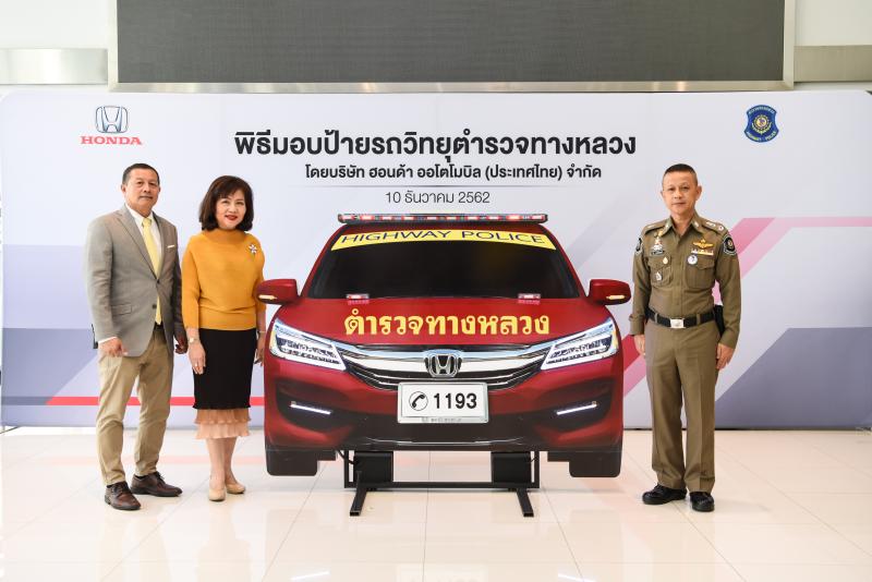 ช่วงเทศกาลปีใหม่และเทศกาลสงกรานต์ เป็นช่วงเทศกาลวันหยุดยาวที่ประชาชนจำนวนมากมีการวางแผนเดินทางกลับภูมิลำเนาและขับรถเดินทางท่องเที่ยวทางไกล จึงทำให้มีสถิติการเกิดอุบัติเหตุบนท้องถนนสูง ฮอนด้าตระหนักถึงปัญหาดังกล่าว และได้ให้ความสำคัญกับความปลอดภัยบนท้องถนนมาโดยตลอด จึงได้สนับสนุนอุปกรณ์ป้ายรูปรถวิทยุตำรวจทางหลวงพร้อมอุปกรณ์ส่องสว่าง ขนาดเท่ารถยนต์จริง จำนวน 40 ป้าย ให้กับกองบังคับการตำรวจทางตรวจ