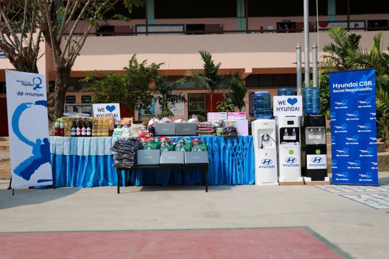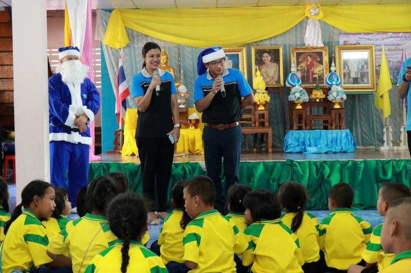 ในครั้งนี้ มร.โตชิฮิเดะ อาโนะ ประธาน และพนักงานบริษัทฯ ได้มาร่วมกิจกรรมจัดเลี้ยงอาหารกลางวัน พร้อมมอบเครื่องทำน้ำเย็น ข้าวสารอาหารแห้ง อุปกรณ์กีฬา และเครื่องคอมพิวเตอร์ประเภท Laptop จำนวน 15 เครื่อง เพื่อใช้ประโยชน์ในการศึกษา รวมทั้งร่วมจัดกิจกรรมสันทนาการ เล่นเกมส์ จากบลู ซานต้า ฮุนได อีกด้วย