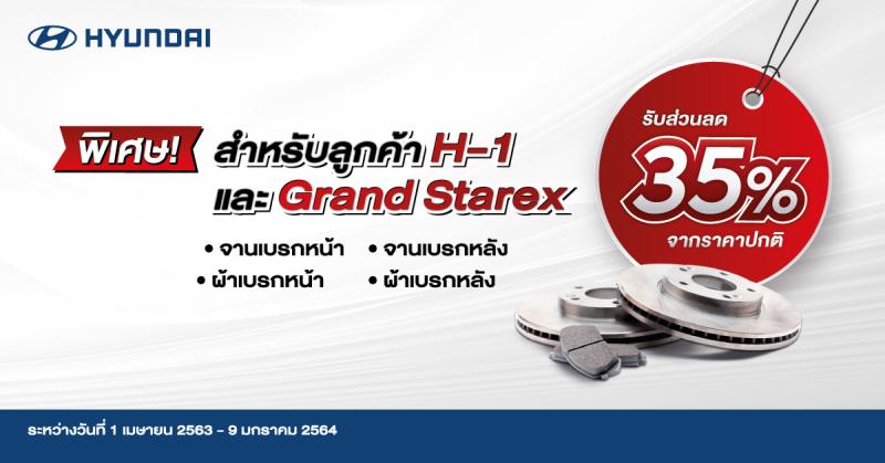 – ส่วนลดพิเศษสำหรับค่าอะไหล่และน้ำมันเครื่องสูงสุด 15 % ระหว่างวันที่ 1 เมษายน – 16 พฤษภาคม 2563 และพิเศษสำหรับรุ่นเอช-วัน และ แกรนด์ สตาร์เร็กซ์ เฉพาะรุ่นปี 2551 เป็นต้นไป รับเพิ่มส่วนลด 35% สำหรับผ้าเบรกและจานเบรกจากราคาปกติ ระหว่างวันที่ 1 เมษายน 2563 – 9 มกราคม 2564