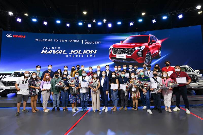 เกรท วอลล์ มอเตอร์ จัดพิธีส่งมอบรถยนต์ All New HAVAL JOLION Hybrid SUV ให้กับลูกค้าชาวไทยกลุ่มแรก ณ บูธ เกรท วอลล์ มอเตอร์ ภายในงานมหกรรมยานยนต์ ครั้งที่ 38 (Thailand International Motor Expo 2021) โดยมีทีมผู้บริหารระดับสูง นำโดย มร. สตีเว่น หวัง รองประธาน เกรท วอลล์ มอเตอร์ ภูมิภาคอาเซียนและประเทศไทย นายณรงค์ สีตลายน กรรมการผู้จัดการ และนางสาวปิยะนุช จตุรภัทร์ ผู้อำนวยการฝ่ายขาย เกรท วอลล์ มอเตอร์ ประเทศไทย ร่วมแสดงความยินดีและเฉลิมฉลอง รวมถึงส่งมอบรถยนต์ All New HAVAL JOLION Hybrid SUV ล็อตแรกให้กับลูกค้าชาวไทยกลุ่มแรกทั้ง 21 ครอบครัว ในวันที่ 12 ธันวาคม พ.ศ. 2564 ณ บูธ เกรท วอลล์ มอเตอร์ ภายในงานมหกรรมยานยนต์ครั้งที่ 38 และอิมแพ็ค เลคไซด์ เมืองทองธานี นอกจากนี้ ยังได้มีการส่งมอบ All New HAVAL JOLION Hybrid SUV พร้อมกันที่ GWM Partner Store ทั่วประเทศอีกด้วย พร้อมยืนยันความตั้งใจในสร้างประสบการณ์การขับขี่ที่สนุกสนานสำหรับทุกคนในครอบครัวผ่านเทคโนโลยีที่ล้ำสมัย ปลอดภัย และเป็นมิตรต่อสิ่งแวดล้อม รวมไปถึงมาตรฐานการบริการแบบ Online-to-Offline ที่เหนือระดับสำหรับผู้ขับขี่ ตอกย้ำความมุ่งมั่นของ เกรท วอลล์ มอเตอร์ สู่การเป็นผู้นำด้านรถยนต์ไฟฟ้า (xEV Leader) ของประเทศไทย