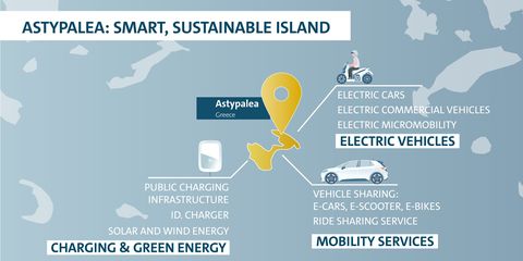 รายงานข่าวจากประเทศกรีซ ระบุว่า ค่ายรถยนต์โฟล์คสวาเก้น และรัฐบาลกรีซ บรรลุข้อตกลงในการใช้เกาะ แอสตี้พาเลีย Astypalea ในทะเลเมดิเตอร์เรเนียน ซึ่งอยู่ในเขตประเทศกรีซ เพื่อให้เป็นเกาะที่ปราศจากมลภาวะใดๆ โดย กลุ่มโฟล์ค จะจัดหารถยนต์ไฟฟ้า เพื่อใช้ทดแทนเครื่องยนต์สันดาปภายใน ที่มีใช้อยู่ภายในเกาะปัจจุบัน
