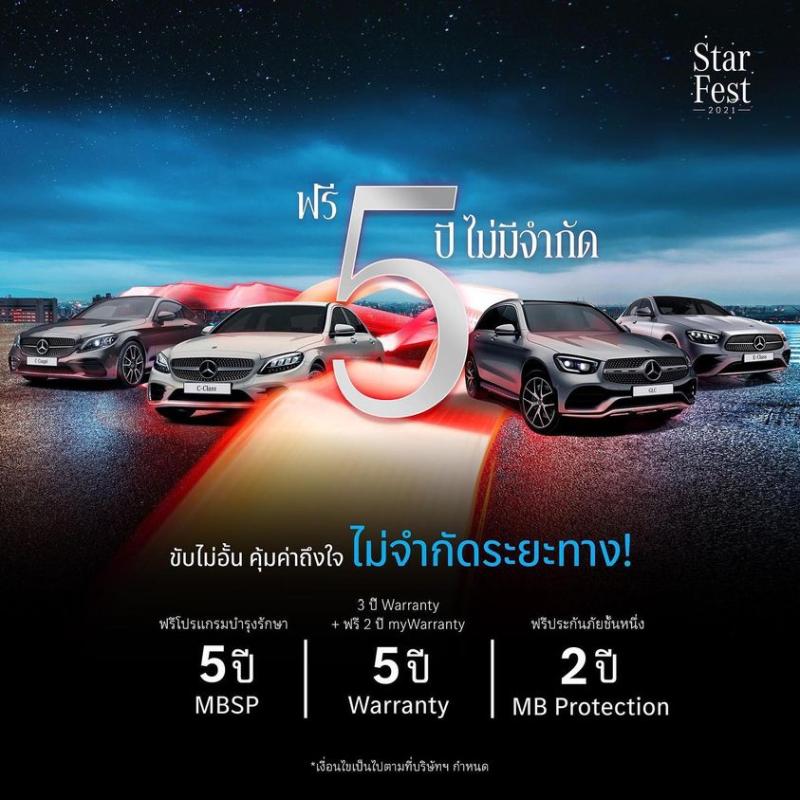 1.ฟรี! โปรแกรมบำรุงรักษา MBSP แพ็คเกจ Compact 5 ปี ไม่จำกัดระยะทาง พร้อมรับบัตรกำนัลส่วนลดผลิตภัณฑ์ MB Accessories มูลค่า 10,000 บาท เมื่อเลือกเป็นเจ้าของรถยนต์ Mercedes-Benz C-Class, Mercedes-Benz GLC และ Mercedes-Benz E-Class