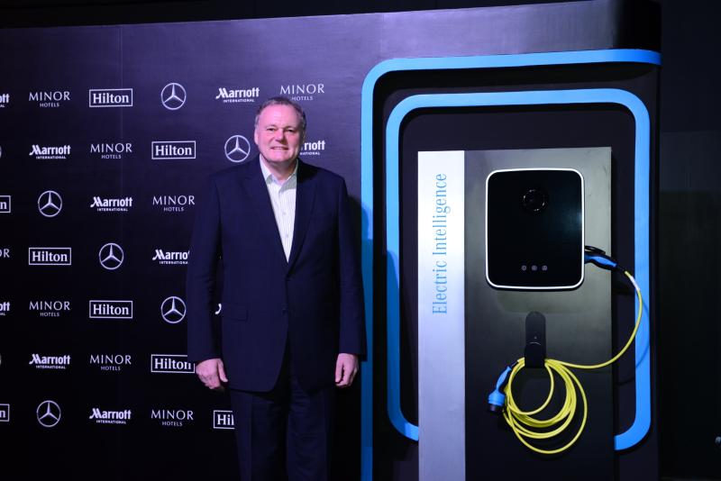 “ตลอดระยะเวลาที่ผ่านมา เมอร์เซเดส-เบนซ์ (ประเทศไทย) ได้รับการสนับสนุนที่ดีจากภาครัฐเสมอมา เราจึงพร้อมตอบรับต่อการพัฒนาอุตสาหกรรมยานยนต์ของประเทศไทย ที่มีเป้าหมาย ที่จะก้าวไปสู่การพัฒนายานยนต์แห่งอนาคตและอุตสาหกรรมเกี่ยวเนื่องที่ใช้พลังงานไฟฟ้า ผ่านการลงทุนเปิดสายการผลิตรถยนต์ปลั๊กอินไฮบริดทุกรุ่นและการตั้งโรงงานผลิตแบตเตอรี่รถยนต์ในประเทศไทย พร้อมนำความรู้ความเชี่ยวชาญจากบริษัทแม่มาพัฒนาบุคลากรชาวไทยเพื่อสร้างความมั่นใจให้กับลูกค้า รวมถึงการสร้างสถานีชาร์จรถยนต์ไฟฟ้าทั่วประเทศเพื่อรองรับ ทุกการเดินทางของลูกค้าให้ดีที่สุด ดังนั้น การขยายจุดติดตั้งสถานีชาร์จรถยนต์ไฟฟ้ากับ 3 เครือโรงแรมชั้นนำ อย่าง Marriott International Minor Hotels และ Hilton ในวันนี้ จึงทำให้เรามั่นใจได้ว่าเมอร์เซเดส-เบนซ์จะสามารถยกระดับการให้บริการด้านรถยนต์ไฟฟ้า พร้อมตอบสนองความต้องการลูกค้าได้อย่างครอบคลุม ตอกย้ำภาพลักษณ์ความเป็นผู้นำอันดับหนึ่งแห่งยนตกรรมพลังงานไฟฟ้าได้อย่างชัดเจน” มร.ไมเคิล กล่าวเพิ่มเติม