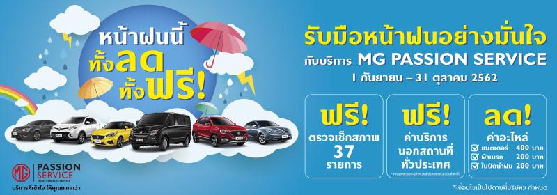 นายพงษ์ศักดิ์ เลิศฤดีวัฒนวงศ์ รองกรรมการผู้จัดการ บริษัท เอ็มจี เซลส์ (ประเทศไทย) จำกัด เปิดเผยว่า บริษัท เอ็มจี เซลส์ (ประเทศไทย) จำกัด ได้ร่วมกับผู้จำหน่ายรถยนต์เอ็มจีทั่วประเทศจัดทำข้อเสนอพิเศษในช่วงฤดูฝนด้วยบริการ MG PASSION SERVICE