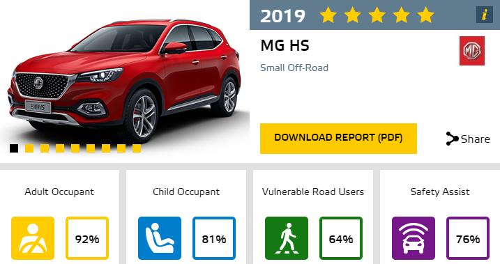EURO NCAP (European New Car Assessment Programme) หรือ องค์กรทดสอบการชนของรถยนต์ใหม่แห่งยุโรป เป็นองค์การระดับนานาชาติที่ได้รับการยอมรับจากค่ายรถยนต์ทั่วโลกว่ามีมาตรฐานและเป็นกลางในการประเมินผล โดยคะแนนจะมาจากการทดสอบซึ่งแบ่งเป็น 4 หัวข้อหลักได้แก่ การป้องกันผู้ขับขี่และผู้โดยสารที่นั่งด้านหน้า (Adult Occupant Protection) การป้องกันผู้โดยสารที่เป็นเด็ก (Child Occupant Protection) การป้องกันคนเดินถนนที่ถูกรถทดสอบชน (Pedestrian Protection) ความปลอดภัยในอุปกรณ์ช่วยเหลือต่างๆ (Safety Assist) โดยการประเมินผลจะสรุปผลคะแนนทั้งหมดและจัดระดับตั้งแต่ 1 ถึง 5 ดาว สำหรับ NEW MG HS และ NEW MG ZS EV ผ่านการทดสอบการชนตามมาตรฐานดังกล่าว และสามารถคว้ามาตรฐาน ความปลอดภัยในระดับสูงสุด คือระดับ 5 ดาว