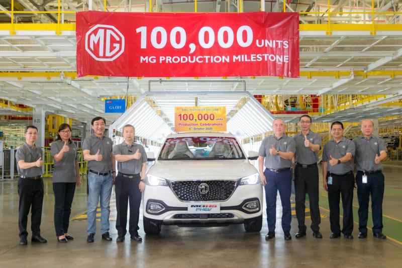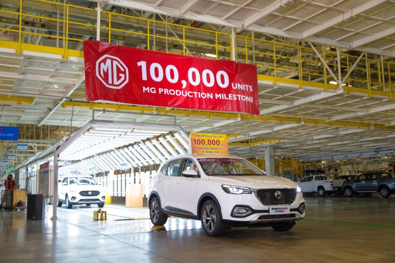 เมื่อเร็วๆ นี้ โรงงานผลิตรถยนต์เอ็มจีในประเทศไทยได้มียอดการผลิตสะสมครบ 100,000 คัน นับตั้งแต่การผลิตรถยนต์เอ็มจีรุ่นแรกในปี พ.ศ. 2557  โดยได้ผลิตรถยนต์เอ็มจีรุ่นต่างๆ ไปแล้ว 8 รุ่น ครอบคลุมทั้งรถยนต์นั่ง ได้แก่ MG6,  MG 5,  MG GS,  MG 3, MG ZS,  MG HS และรถกระบะ MG EXTENDER ซึ่งล่าสุดได้เริ่มผลิตรถยนต์ NEW MG HS PHEV รถยนต์ปลั๊กอินไฮบริดรุ่นแรกของเอ็มจี ซึ่งเตรียมเปิดตัวอย่างเป็นทางการในประเทศไทย และจัดแสดงต่อสาธารณชนเป็นครั้งแรก ที่งาน Fast Auto Show Thailand 2020 ในวันที่ 28 ตุลาคมนี้