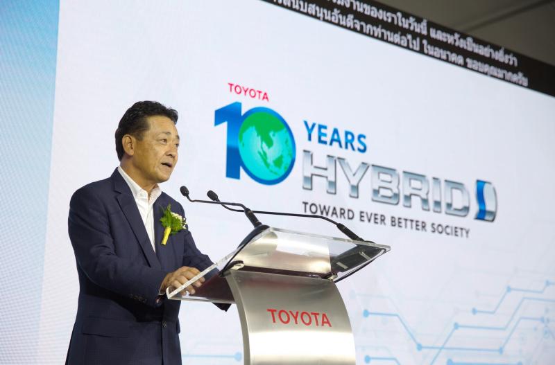 ตลอดระยะเวลา 10ปี ที่ผ่านมา บริษัท โตโยต้า มอเตอร์ ประเทศไทย จำกัด รู้สึกขอบคุณการสนับสนุนของภาครัฐในการส่งเสริมการใช้รถยนต์พลังงานทางเลือก ทั้งในแง่ของการสนับสนุนเชิงนโยบายและสิทธิประโยชน์ต่างๆที่ทางโตโยต้าได้รับจากการดำเนินโครงการรถยนต์ไฮบริด ทำให้โตโยต้าสามารถพัฒนารถยนต์ไฮบริดที่สร้างความพึงพอใจสูงสุดให้แก่ลูกค้า เริ่มจากการแนะนำรถยนต์รุ่น คัมรี ไฮบริด ด้วยเทคโนโลยียานยนต์อัจฉริยะแห่งอนาคต ที่ให้สมรรถนะอันดีเยี่ยม เงียบและนุ่มนวล ประหยัดเชื้อเพลิงสูงสุด และเป็นมิตรต่อสิ่งแวดล้อม จากนั้น เทคโนโลยีไฮบริดได้ถูกพัฒนามาอย่างต่อเนื่องจนถึงเจนเนอเรชั่นที่ 4 ในรุ่น C-HR และ คัมรี ไฮบริด ใหม่ ที่แบตเตอรี่ไฮบริดมีประสิทธิภาพสูงขึ้น มีอายุการใช้งานที่นานขึ้น ช่วยลดความกังวลเรื่องค่าใช้จ่ายในการบำรุงรักษาแก่ลูกค้า นอกจากนี้โตโยต้ายังได้สร้างความเข้าใจและความเชื่อมั่นในเทคโนโลยีไฮบริดให้กับลูกค้ามาโดยตลอด รวมถึงความใส่ใจในบริการดูแลลูกค้าหลังการขายตั้งแต่วันแรกที่ครอบครองถึงตลอดระยะเวลาการใช้งาน รวมถึงการรับประกันคุณภาพแบตเตอรี่ 10 ปี ไม่จำกัดระยะทาง ทำให้รถยนต์ไฮบริดโตโยต้าได้รับการตอบรับเป็นอย่างดีจากลูกค้าชาวไทย จนมียอดขายรวมแล้วทั้งสิ้นกว่า 78,000 คัน ตอกย้ำถึงความเชื่อมั่นและความนิยมของรถยนต์ไฮบริดในประเทศไทยที่เติบโตขึ้นได้เป็นอย่างดี