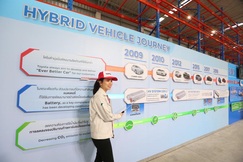 มร.มิจิโนบุ ซึงาตะ กรรมการผู้จัดการใหญ่ บริษัท โตโยต้า มอเตอร์ ประเทศไทย จำกัด เปิดเผยว่า “จากความสำเร็จตลอด 10 ปี ที่ผ่านมาของการแนะนำรถยนต์ไฮบริดสู่ตลาดรถยนต์ในไทย บริษัท โตโยต้า มอเตอร์ ประเทศไทย จำกัด พร้อมแล้วที่จะก้าวสู่ความท้าทายครั้งใหม่ เพื่อตอกย้ำความมุ่งมั่นของเราในการพัฒนาเทคโนโลยีและตอบสนองนโยบายของภาครัฐ ที่ต้องการผลักดันให้ประเทศไทยเป็นฐานการผลิตรถยนต์ที่เป็นมิตรต่อสิ่งแวดล้อมในระยะยาว ตลอดจนเตรียมความพร้อมในการขยายการรองรับการใช้งานรถยนต์ไฮบริดในอนาคต หนึ่งในปัจจัยสำคัญ ได้แก่ การผลิตแบตเตอรี่รถยนต์ไฮบริด และการบริหารจัดการแบตเตอรี่อย่างครบวงจร โตโยต้าจึงได้ก่อตั้ง สายการผลิตแบตเตอรี่ รถยนต์ไฮบริด ขึ้นที่โรงงานประกอบรถยนต์โตโยต้า เกตเวย์ จังหวัดฉะเชิงเทรา ในเดือนพฤษภาคมที่ผ่านมา ซึ่งถือเป็นโรงงานโตโยต้าที่ประกอบแบตเตอรี่รถยนต์ไฮบริดแห่งแรกในภูมิภาคเอเชียตะวันออกเฉียงใต้ โดยมีการนำเทคโนโลยีจักรกลระดับสูง ตลอดจนองค์ความรู้และประสบการณ์ด้านการผลิตแบตเตอรี่ไฮบริดจาก โตโยต้าที่ประเทศญี่ปุ่นมาปรับใช้ เพื่อให้การดำเนินงานเป็นไปในมาตรฐานเดียวกันในระดับสากล และพร้อมสำหรับการผลิตแบตเตอรี่ไฮบริดเพื่อใช้ในรถยนต์รุ่นคัมรี ไฮบริด และ C-HR รวมถึงรถยนต์ไฮบริดรุ่นอื่นๆในอนาคต”