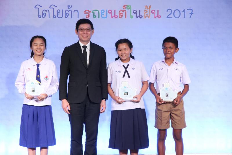 นายสุรศักดิ์ สุทองวัน ผู้ช่วยกรรมการผู้จัดการใหญ่ บริษัท โตโยต้า มอเตอร์ ประเทศไทย จำกัด พร้อมด้วย นายพีรศักดิ์ รัตนะ ผู้ตรวจราชการกระทรวงศึกษาธิการ ประจำเขตตรวจราชการที่ 7 และ 8 และ นางสุภัชชา สุทธิพล รองอธิบดีกรมกิจการเด็กและเยาวชน ร่วมเป็นประธานในงานประกาศผลรางวัลผู้ชนะเลิศ โครงการประกวดภาพวาดระบายสีรถยนต์ในฝัน “TOYOTA Dream Car Art Contest 2017” เมื่อวันอังคารที่ 23 พฤษภาคม 2560 หอศิลปวัฒนธรรมแห่งกรุงเทพมหานคร