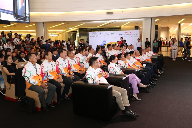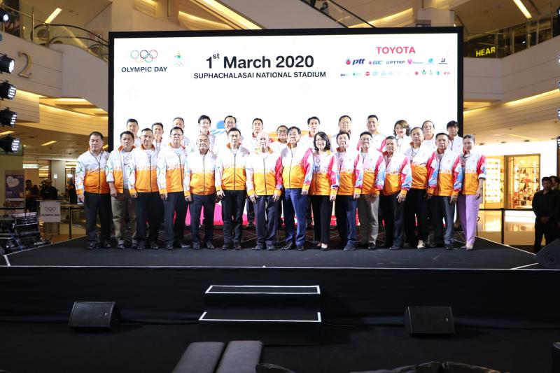 นายศุภชัย สินสุวรรณรักษ์ ผู้ช่วยกรรมการผู้จัดการใหญ่ บริษัท โตโยต้า มอเตอร์ ประเทศไทย จำกัด พร้อมด้วย พลตรีจารึก อารีราชการัณย์ รองประธานและเลขาธิการคณะกรรมการโอลิมปิกแห่งประเทศไทย และนายพิชัย ชุณหวชิร รองประธานคณะกรรมการโอลิมปิกแห่งประเทศไทย ในพระบรมราชูปถัมภ์ และนางปิยะดา จงพยุหะ ผู้ช่วยกรรมการผู้จัดการใหญ่ บริหารชื่อเสียงองค์กรและกิจการเพื่อสังคม บริษัท ปตท. จำกัด (มหาชน) เข้าร่วมงานแถลงข่าวการจัดกิจกรรมเดิน-วิ่ง 2020 OLYMPIC DAY เมื่อวันที่ 18 กุมภาพันธ์ 2563 ณ ศูนย์การค้า สยามพารากอน แฟชั่นฮอลล์ ชั้น 1