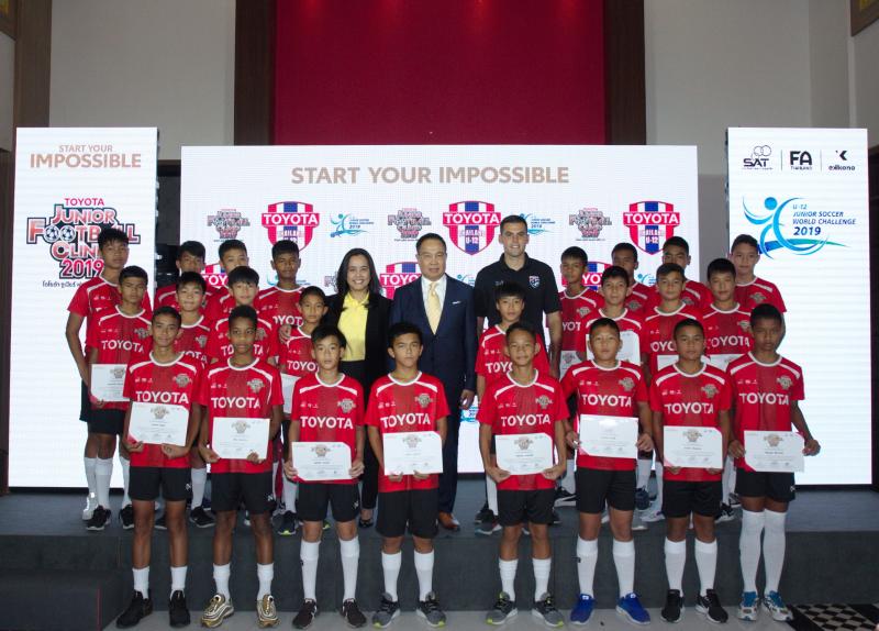 บริษัท โตโยต้า มอเตอร์ ประเทศไทย จำกัด ร่วมกับ การกีฬาแห่งประเทศไทย สมาคมกีฬาฟุตบอลแห่งประเทศไทย ในพระบรมราชูปถัมภ์ และสถาบันฝึกสอนฟุตบอลระดับโลก บริษัท เอคโคโน เมธอด ซอคเกอร์ เซอร์วิส ร่วมแถลงข่าวเปิดตัวนักกีฬาทีม Toyota Thailand U-12 ภายใต้โครงการ “โตโยต้า จูเนียร์ ฟุตบอลคลินิก 2019” เพื่อเป็นตัวแทนประเทศไทยในการแข่งขันฟุตบอลระดับสากล เมื่อวันที่ 22 สิงหาคม 2562 ณ ศูนย์พัฒนาศักยภาพกีฬาฟุตบอล ภายในมหาวิทยาลัยกรุงเทพธนบุรี