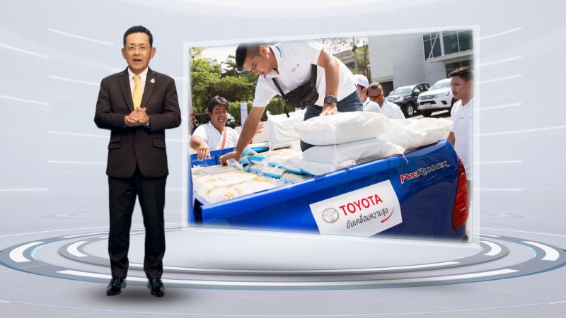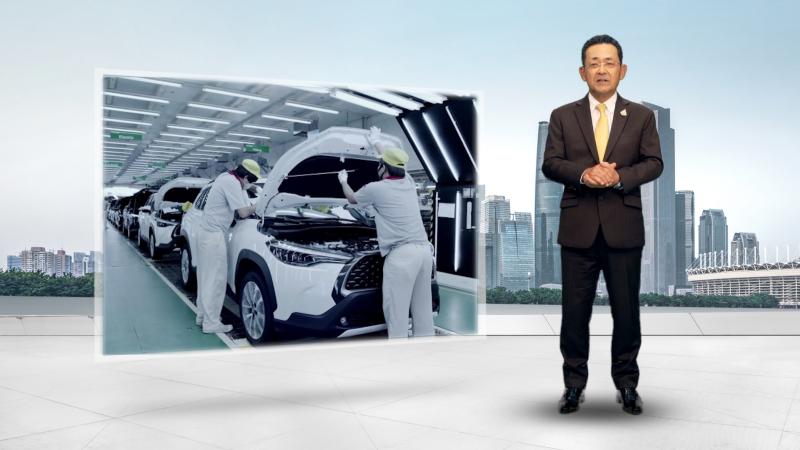 นอกจากนี้ ผมขอแสดงความซาบซึ้งใจต่อท่านผู้ว่าราชการจังหวัดสมุทรปราการและฉะเชิงเทรา ซึ่งเป็นจังหวัดที่โรงงานทั้ง 3 แห่งของเราตั้งอยู่ สำหรับการอนุเคราะห์ให้เราสามารถดำเนินการจัดส่งรถยนต์ใหม่ ตลอดจนชิ้นส่วนต่าง ๆ ไปยังจังหวัดอื่น ๆ ทั่วประเทศ ถึงแม้จะอยู่ในช่วงระยะเวลาของการบังคับใช้มาตรการเคอร์ฟิวก็ตาม และท่านยังยินดีอนุญาตให้โตโยต้าสามารถกลับมาเดินสายการผลิตอีกครั้งเมื่อเดือนพฤษภาคมที่ผ่านมา ผมรู้สึกปลาบปลื้มที่ได้เห็นพนักงานในโรงงานของเรามีความสุขที่ได้กลับมาทำงานอีกครั้ง โดยปัจจุบันการผลิตของเราก็สามารถดำเนินการได้อย่างราบรื่น และตั้งใจที่จะเพิ่มยอดการผลิตให้สูงขึ้นนับตั้งแต่เดือนนี้เป็นต้นไป โดยเราจะยังคงเน้นย้ำในการดูแลสุขอนามัยและความปลอดภัยขั้นสูงสุดให้กับพนักงานของเราทุกคน พร้อมรักษาระดับความเข้มงวดของการใช้มาตรการการป้องกันโรค ตามแนวทางของรัฐบาลอย่างเคร่งครัด”