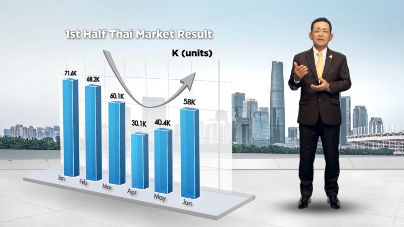 มร.ซึงาตะ คาดการณ์ว่า “ในส่วนของภาคธุรกิจยานยนต์ของประเทศไทยนั้น ผลกระทบที่เราได้รับยังถือว่าไม่รุนแรงเท่ากับประเทศอื่นๆ ในภูมิภาคอาเซียน และการฟื้นตัวของประเทศไทยดูจะรวดเร็วกว่า ดังนั้น แม้เราอาจจะยังไม่ควรที่จะประเมินสถานการณ์ให้สูงจนเกินไป แต่ผมเห็นว่าแนวโน้มของตลาดรถยนต์ไทยน่าจะไปในทิศทางที่ดี และสถานการณ์จะไม่แย่เท่ากับที่เคยคาดการณ์ไว้ ซึ่งผมหวังว่าประเทศไทยจะเป็นผู้นำในการฟื้นตัวให้กับทวีปเอเชียทั้งหมดในช่วงเวลาที่เหลือของปีนี้ นอกจากแนวโน้มเชิงบวกที่เห็นได้จากยอดจำหน่ายรายเดือนแล้ว ประเทศไทยยังประสบความสำเร็จในการจัดงานบางกอก อินเตอร์เนชั่นแนล มอเตอร์โชว์ ครั้งที่ 41 ซึ่งในขณะนี้มีผู้สนใจเข้าเยี่ยมชมงานเป็นจำนวนมาก และเมื่อพิจารณาสัญญาณบวกเหล่านี้แล้ว เราจึงได้ปรับตัวเลขคาดการณ์ยอดขายรถยนต์ในปี 2563 เป็น 660,000 คัน คิดเป็น 65% เมื่อเทียบกับปีที่ผ่านมา”