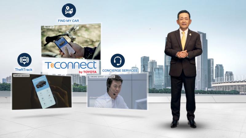 นอกจากนี้ เมื่อต้นเดือนที่ผ่านมา เราได้ทำการเปิดตัวรถยนต์อเนกประสงค์รุ่นใหม่ล่าสุด “โคโรลล่า ครอส” ออกสู่ตลาดเป็นครั้งแรก ภายใต้สโลแกน “A New Journey” หรือ “ให้ชีวิตเดินทาง” โดยรถยนต์รุ่นนี้ถือเป็นปรากฏการณ์ใหม่ของเรา ในฐานะที่เป็นรถยนต์ในเซกเมนต์ที่โตโยต้าไม่เคยทำตลาดมาก่อน พร้อมกันนี้ ผมขอแจ้งให้ทราบเพิ่มเติมว่า เราได้ติดตั้งแอพพลิเคชั่น T-Connect ในรถยนต์รุ่นใหม่ทั้งสามรุ่นดังกล่าว โดยนี่ถือเป็น “ระบบการเชื่อมต่ออัจฉริยะ” โครงการแรกของโตโยต้าในเอเชีย ซึ่งเกิดจากการพัฒนาร่วมกันระหว่าง บริษัท โตโยต้า และกลุ่มผู้ผลิตชิ้นส่วนโตโยต้าภายในประเทศไทย ทั้งนี้ เทคโนโลยี T-Connect มอบฟังก์ชั่นการใช้งานที่หลากหลาย ไม่ว่าจะเป็นระบบติดตามเมื่อเกิดการโจรกรรม การค้นหาตำแหน่งรถ และบริการผู้ช่วยส่วนตัว