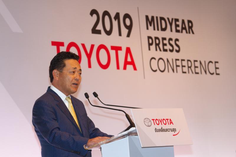 มร.มิจิโนบุ ซึงาตะ กรรมการผู้จัดการใหญ่ บริษัท โตโยต้า มอเตอร์ ประเทศไทย จำกัด แถลงสถิติการจำหน่ายรถยนต์ครึ่งแรกของปี 2562 พร้อมประมาณการตลาดรถยนต์ไทยปี 2562 เมื่อวันที่ 24 กรกฎาคม 2562 ห้องบอลรูม โรงแรมคอนราด กรุงเทพฯ
