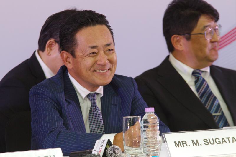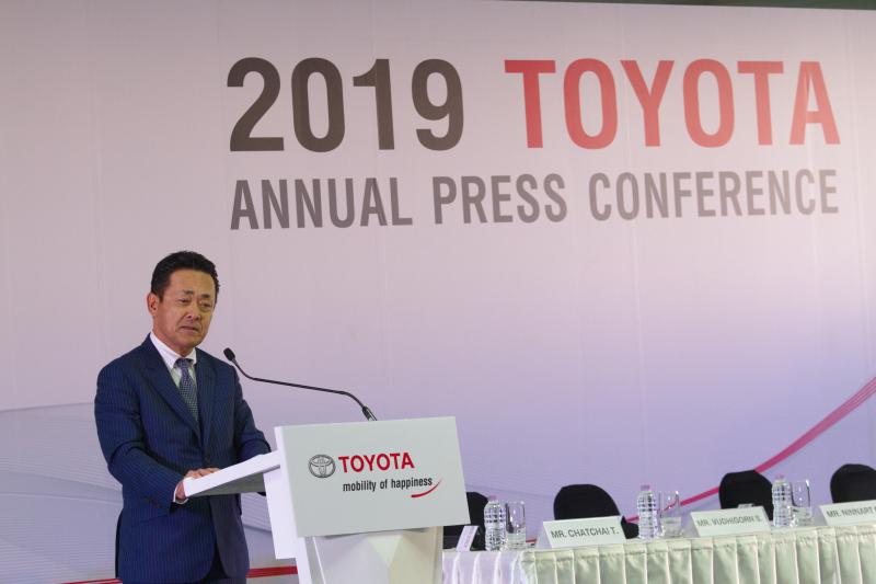 มร.มิจิโนบุ ซึงาตะ กรรมการผู้จัดการใหญ่ บริษัท โตโยต้า มอเตอร์ ประเทศไทย จำกัด แถลงสถิติการจำหน่ายรถยนต์ปี 2561 พร้อมคาดการณ์ตลาดรถยนต์ไทยปี 2562 เมื่อวันที่ 22 มกราคม 2562 ณ ศูนย์ขับทดสอบรถยนต์ Toyota Driving Experience Park