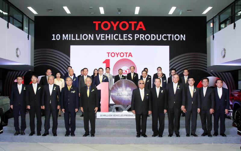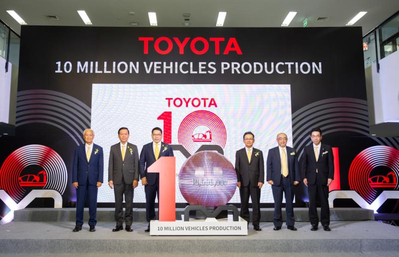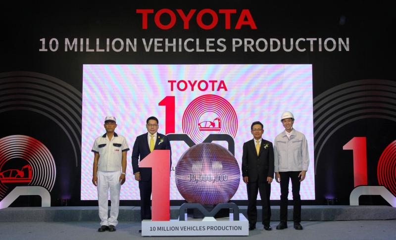 บริษัท โตโยต้า มอเตอร์ ประเทศไทย จำกัด เริ่มดำเนินธุรกิจในประเทศไทยเมื่อปี พ.ศ. 2505 ภายใต้ปรัชญา “ส่งเสริมพัฒนาการอย่างยั่งยืนของสังคมและประเทศที่โตโยต้าเข้าไปดำเนินธุรกิจ” ส่งผลให้ธุรกิจรถยนต์ของโตโยต้าเจริญก้าวหน้าขึ้นโดยลำดับ จวบจนปัจจุบันกว่า 56 ปี ภายใต้การลงทุนเพื่อเสริมสร้างความเข้มแข็งให้กับธุรกิจอย่างต่อเนื่อง จากโรงงานผลิต 3 แห่ง ได้แก่ โรงงานประกอบรถยนต์สำโรง จ.สมุทรปราการ โรงงานประกอบรถยนต์เกตเวย์ อ.แปลงยาว จ.ฉะเชิงเทรา และโรงงานประกอบรถยนต์บ้านโพธิ์ อ.บ้านโพธิ์ จ.ฉะเชิงเทรา ด้วยความร่วมมือร่วมใจ และความทุ่มเทของพนักงานทุกคน เพื่อตอบสนองความต้องการของลูกค้าให้ได้รับผลิตภัณฑ์และบริการที่ดีที่สุด นำมาสู่การบรรลุยอดการผลิตครบ 10 ล้านคัน และเป็นอีกหนึ่งในหน้าประวัติศาสตร์แห่งความสำเร็จของโตโยต้า