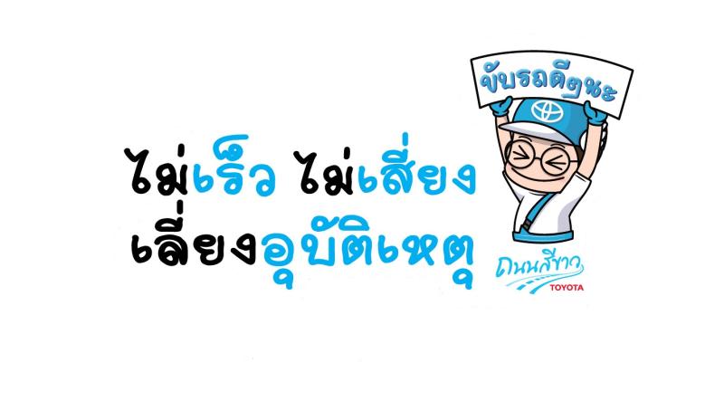 โตโยต้าขอเชิญชวนทุกคนมีส่วนร่วมในการรณรงค์และประชาสัมพันธ์ การลดความเร็วในการขับขี่ ด้วยการร่วมกันติดสติ๊กเกอร์ “ไม่เร็ว ไม่เสี่ยง เลี่ยงอุบัติเหตุ” โดยสามารถขอรับสติ๊กเกอร์ได้ที่ศูนย์บริการโตโยต้าทุกสาขา เพื่อเป็นสัญลักษณ์แห่งการร่วมมือร่วมใจกันสร้างความปลอดภัยในการเดินทาง เพื่อส่งมอบความสุขและสร้างรอยยิ้มให้แก่คนไทยทุกคน