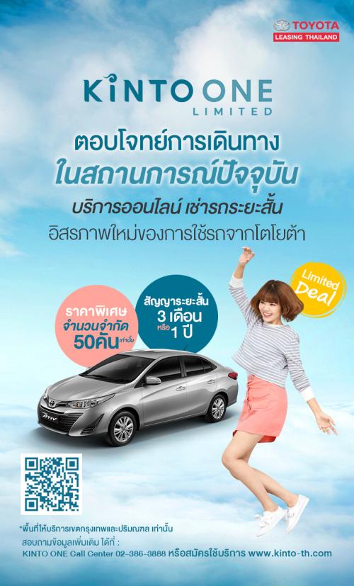 นายสุรศักดิ์ สุทองวัน รองกรรมการผู้จัดการใหญ่ บริษัท โตโยต้า มอเตอร์ ประเทศไทย จำกัด กล่าวว่า “บริษัทฯ เล็งเห็นถึงความจำเป็นของลูกค้า ที่ต้องการการเดินทางที่เป็นส่วนตัวและปลอดภัยในช่วงระยะเวลาการแพร่ระบาดของเชื้อไวรัสโควิด-19 จึงขอนำเสนอบริการเช่าใช้รถ “KINTO ONE Limited โดยใช้รถทดลองขับคุณภาพดี รุ่น ATIV” ให้ลูกค้าบุคคลเช่ารถระยะสั้นเป็นเวลา 3 เดือน หรือ 1 ปี จำนวนจำกัด เพียง 50 คัน สำหรับลูกค้าในเขตกรุงเทพฯและปริมณฑล เพื่อบรรเทาความกังวลในการเดินทางสัญจรประจำวัน อีกทั้งยังเป็นการช่วยลดภาระค่าใช้จ่ายของลูกค้า ซึ่งราคาเปรียบเทียบได้กับการเดินทางด้วยขนส่งสาธารณะในช่วงเวลานี้