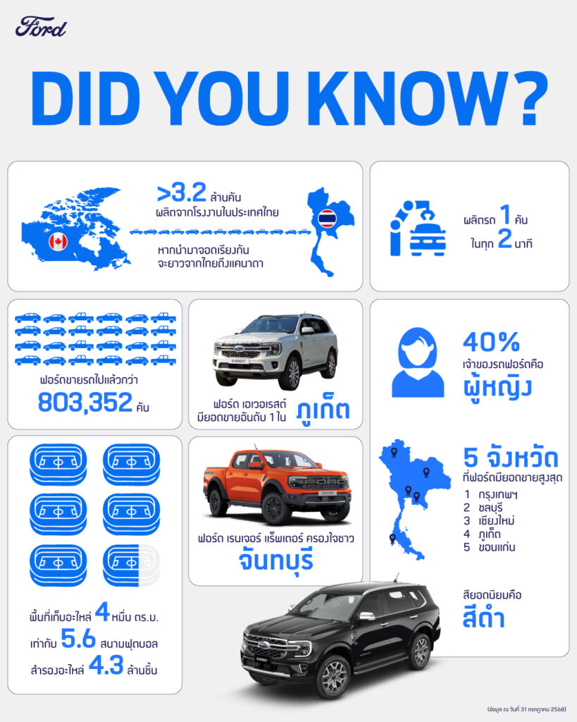 จากข้อมูลทั้งหมดนี้ จึงไม่น่าแปลกใจที่ฟอร์ดยังคงเป็นหนึ่งในแบรนด์รถยนต์ที่ครองใจคนไทยมาอย่างยาวนาน ด้วยคุณภาพผลิตภัณฑ์ ความเข้าใจลูกค้า และบริการหลังการขายที่มอบความอุ่นใจตลอดการใช้งาน ทำให้ฟอร์ดมีความพร้อมที่จะเดินหน้าสู่ทศวรรษที่ 3 อย่างแข็งแกร่ง พร้อม ‘ดุดันทุกสถานการณ์’ ไปกับคนไทยอีกนาน