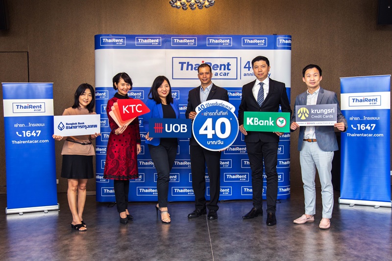 40ปี ไทยเร้นท์อะคาร์จับมือบัตรเครดิตธนาคารพันธมิตร ฉลอง 40ปี ให้เช่ารถวันละ 40 บาท ทุกรุ่น ทุกสาขาทั่วประเทศ ในแคมเปญ 40ปี ไทยเร้นท์อะคาร์ เช่ารถทั้งทีแค่ 40 บาท