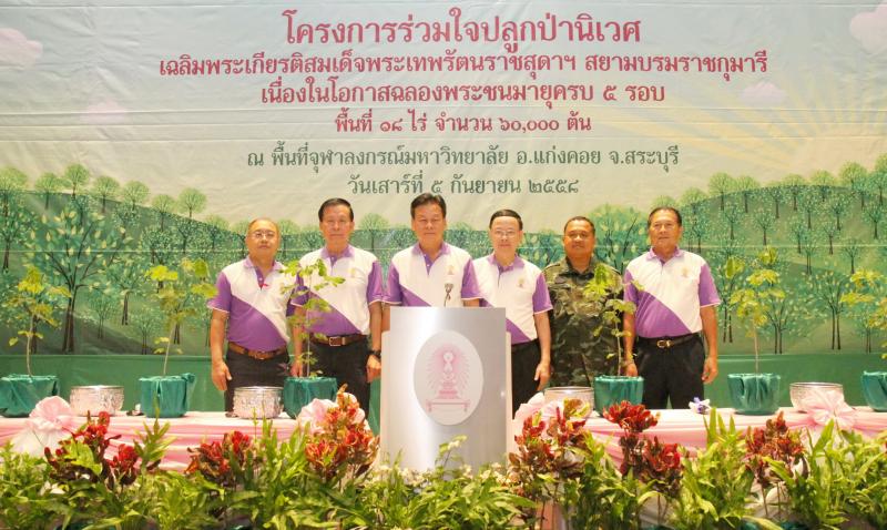 นายนินนาท ไชยธีรภิญโญ รองประธานกรรมการ บริษัท โตโยต้า มอเตอร์ ประเทศไทย จำกัด พร้อมด้วย ศาสตราจารย์นายแพทย์ภิรมย์ กมลรัตนกุล อธิการบดีจุฬาลงกรณ์มหาวิทยาลัย และนายวิเชียร พุฒิวิญญู ผู้ว่าราชการจังหวัดสระบุรี นำคณะอาสาสมัครปลูกป่า จำนวนกว่า