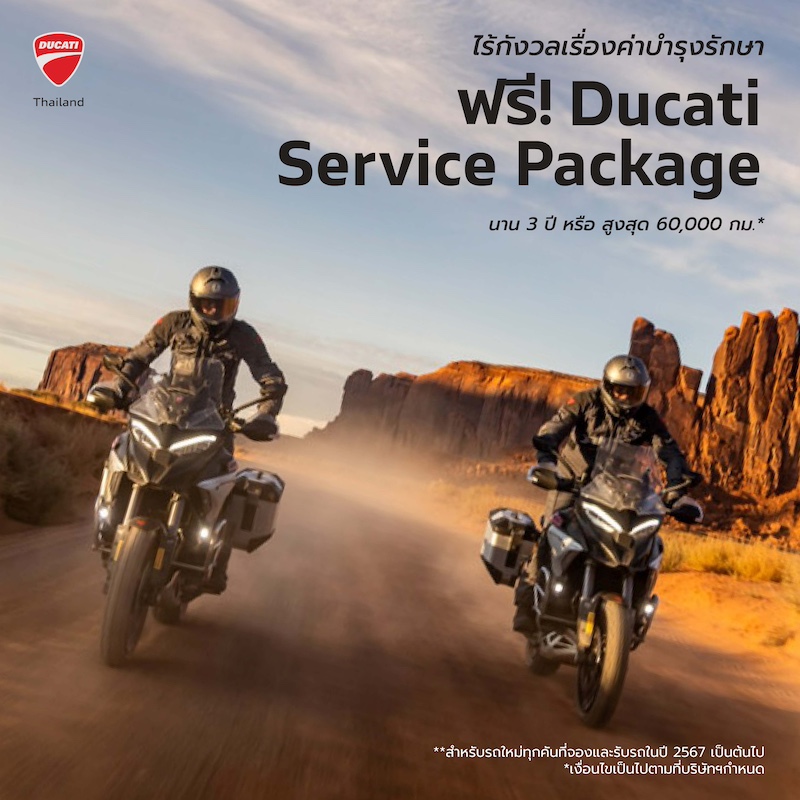 ดูคาติ ประเทศไทย เพิ่มระยะเวลารับประกันตัวรถทุกคันจากเดิม 3 ปี เป็น 4 ปีเต็ม พร้อมส่งแพ็คเกจบริการดูแลบำรุงรักษาหลังการขาย Ducati Service Package ให้ลูกค้าที่ออกรถปีนี้ มีความอุ่นใจ โดยสามารถนำรถเข้าเซอร์วิสตามรอบได้ฟรีนาน 3 ปี หรือ 60,000 กิโลเมตร เผยแผนเดินหน้าขยายโชว์รูมและศูนย์บริการให้ครอบคลุมทั่วประเทศรองรับการเติบโต พร้อมเตรียมจัดงาน Grand Opening “ดูคาติ พัทยา โชว์รูมเต็มรูปแบบสาขาใหม่ ต้นเดือนเมษายนที่จะถึงนี้