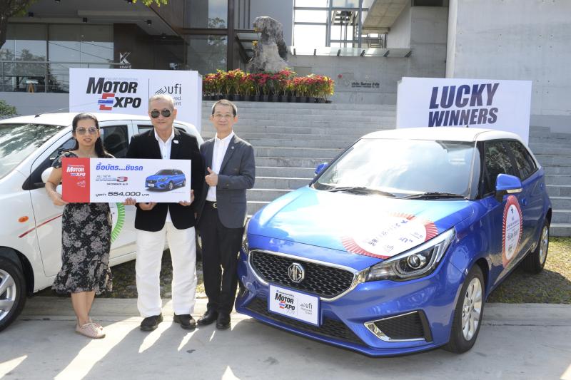 ประพงษ์ ไม้เจริญ รองประธานจัดงาน ควบคุมงานด้านการปฏิบัติงานทั่วไป มอบรางวัลรายการ “ซื้อบัตร…ชิงรถ” ALL NEW MG3 HATCHBACK รุ่น D มูลค่า 554,000 บาท ผู้โชคดี ได้แก่ พรทิวา โพธิ์ทอง จากปทุมธานี