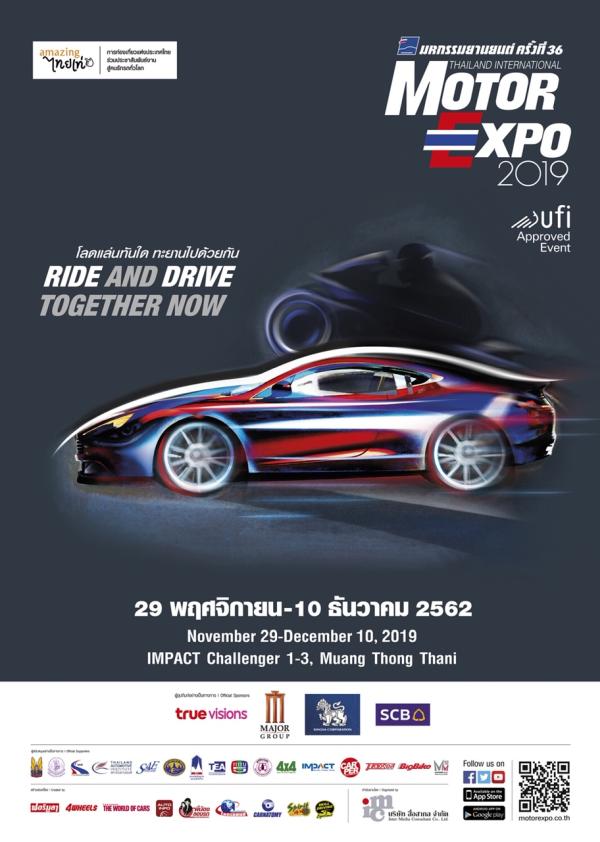 ขวัญชัย ปภัสร์พงษ์ ประธาน บริษัท สื่อสากล จำกัด และประธานจัดงาน “มหกรรมยานยนต์ ครั้งที่ 36” (MOTOR EXPO 2019) เปิดเผยว่า งานปีนี้จัดขึ้นภายใต้แนวคิด “โลดแล่นทันใด ทะยานไปด้วยกัน – Ride and Drive Together Now” เพื่อส่งเสริมอุตสาหกรรมยานยนต์ไทยให้ขยายตัว และเชิญชวนผู้ใช้ยานยนต์ทุกประเภททะยานไปด้วยกัน โดยมี บริษัทรถยนต์ รถจักรยานยนต์ และอุปกรณ์เกี่ยวเนื่อง จำนวนมากให้ความสนใจจองพื้นที่แสดงงาน