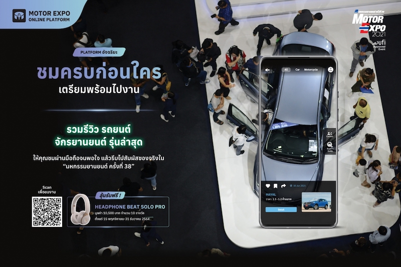 - “ชม MOTOR EXPO ONLINE ชิงรางวัล” ผู้ชมงาน MOTOR EXPO ONLINE PLATFORM ผ่านลิงค์จาก https://ve.motorexpo.co.th มีสิทธิ์ลงทะเบียนเพื่อชิงรางวัล Headphone Beats Solo Pro Wireless Noise Cancelling จำนวน 10 รางวัล มูลค่ารางวัลละ 10,500 บาท รวมมูลค่า 105,000 บาท
