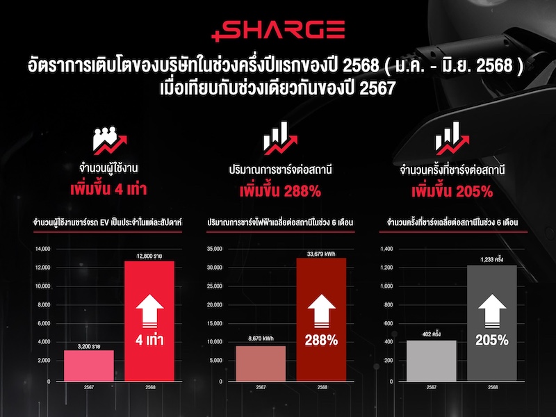 SHARGE โตติดสปีด ยอดผู้ใช้สถานีชาร์จ EV พุ่ง 4 เท่าตัวเปิดเกมรุกสั่งชาร์จข้ามค่ายในแอปเดียว เล็งขยายตลาดรถเชิงพาณิชย์รับเทรนด์อนาคต