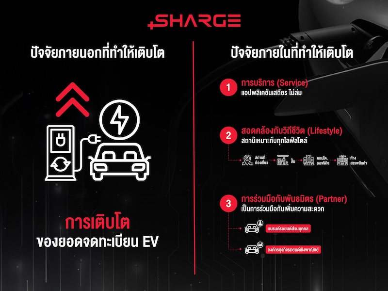 เบื้องต้น บริษัทประเมินว่า ยอดที่เติบโตขึ้นทุกด้านมาจากหลากหลายสาเหตุ ทั้งจากปัจจัยภายนอกอย่าง การเติบโตของยอดจดทะเบียน EV เนื่องจากผู้บริโภคมีความมั่นใจในการเปลี่ยนผ่านจากรถยนต์ที่ใช้น้ำมัน มาสู่รถ EV อย่างต่อเนื่อง และปัจจัยภายใน คือการได้รับการยอมรับจากผู้บริโภคในฐานะ แอปพลิเคชันด้าน EV Charger ที่ดี จากความใส่ใจของบริษัท 3 ด้าน ได้แก่ 1.การบริการ (Service) ออกแบบระบบการใช้งาน รวมถึงแอปพลิเคชันให้สามารถใช้งานได้ง่าย มีค่าความเสถียรสูง ไม่มีปัญหาแอปล่ม จึงส่งผลให้ผู้บริโภคให้ความไว้วางใจใช้บริการอย่างต่อเนื่อง 2.ความสอดคล้องกับวิถีชีวิต (Lifestyle) มุ่งพัฒนาสถานีครอบคลุมทำเลสำคัญ เช่น แหล่งท่องเที่ยว สถานีพลังงาน โชว์รูมรถยนต์ คอนโดมิเนียม ห้างสรรพสินค้า แหล่งโลจิสติกส์ สถานที่สำคัญ ที่มีความต้องการชาร์จ EV จริง เข้ากับไลฟ์สไตล์ผู้บริโภค และ 3.ความร่วมมือกับพันธมิตร (Partnership) จับมือกับพันธมิตรที่แข็งแกร่งทั้งฝั่งแบรนด์รถยนต์ส่วนบุคคล (Passenger Vehicle) ตลอดจนองค์กรธุรกิจที่มีความต้องการเปลี่ยนผ่านรถยนต์เชิงพาณิชย์ (Commercial Vehicle) ของตนเองเป็น EV ทำให้มีฐานผู้ใช้งานเป็นประจำเพิ่มขึ้นอย่างต่อเนื่อง ปัจจัยทั้งหมดส่งผลให้สถานะของบริษัทในปัจจุบันกลายเป็นหนึ่งในผู้เล่นรายใหญ่ระดับประเทศที่มีบริการที่เกี่ยวข้องกับ EV Ecosystem สำหรับทั้งผู้ใช้งานทั่วไปและองค์กรอย่างครบวงจร