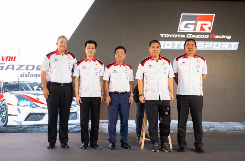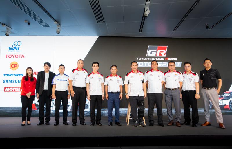 มร.มิจิโนบุ ซึงาตะ กรรมการผู้จัดการใหญ่ บริษัท โตโยต้า มอเตอร์ ประเทศไทย จำกัด พร้อมด้วย นายสนธยา คุณปลื้ม อุปนายก 2 ราชยานยนต์สมาคมแห่งประเทศไทย ใน พระบรมราชูปถัมภ์ – สมาคมกีฬา ร่วมแถลงข่าวการจัดกิจกรรม “Toyota Gazoo Racing Motorsport 2019” เมื่อวันอังคารที่ 23 เมษายน 2562 ณ Toyota ALIVE SPACE ไอคอนสยาม